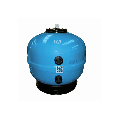 Reinforced fibreglass bobbin sand filter for public pools. Filtration bed height of 1,2 m. From Ø1050 to Ø3000.